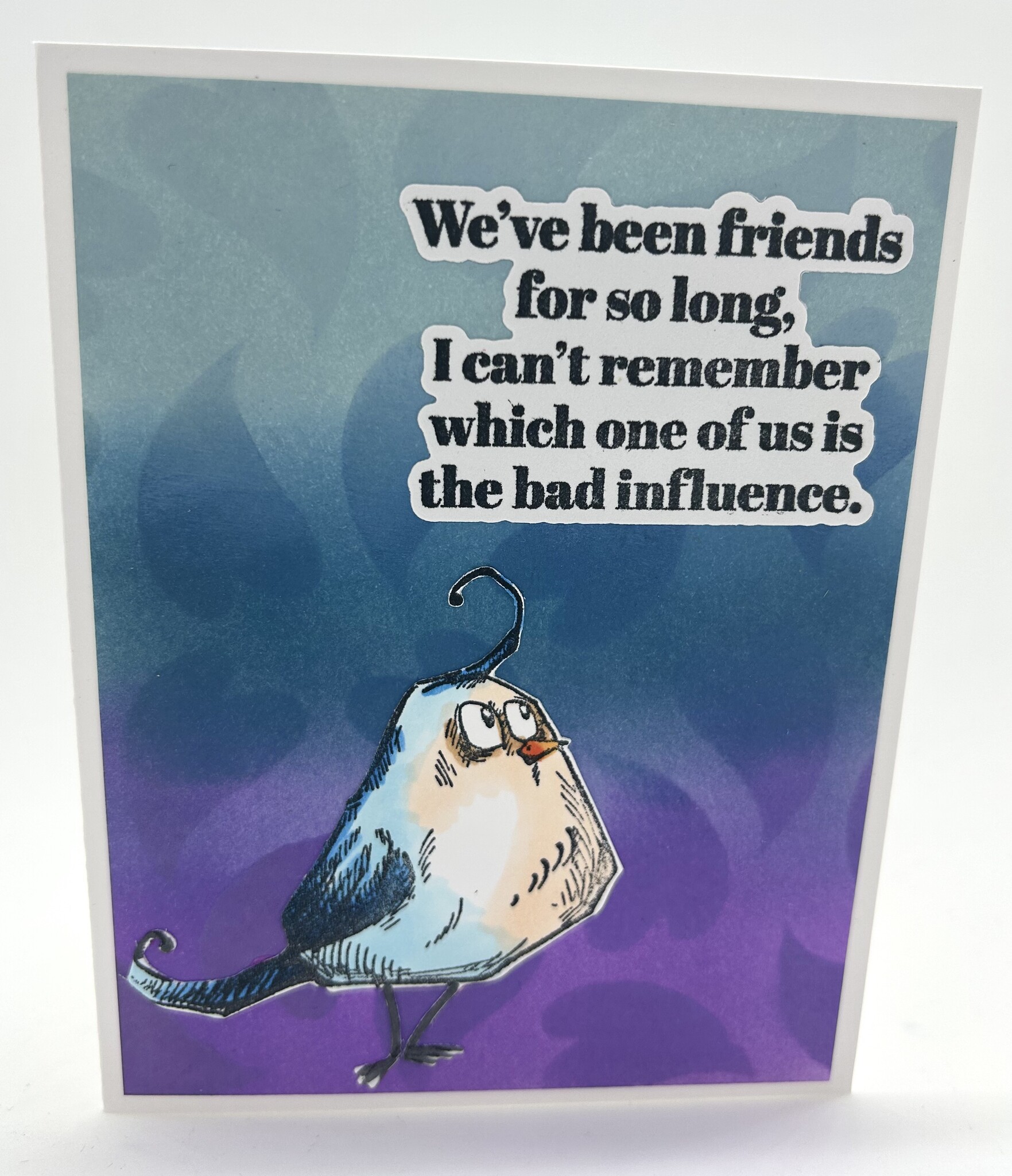 Crazy bad influence Cheapest shipping from $1.04 Stock Status: 2 pcs Delivery Status: 3-5 days $7 Quantity pcs Add To Cart Description Card measures 4.25 x 5.5 inches.Colours will varyInside of card is also shown